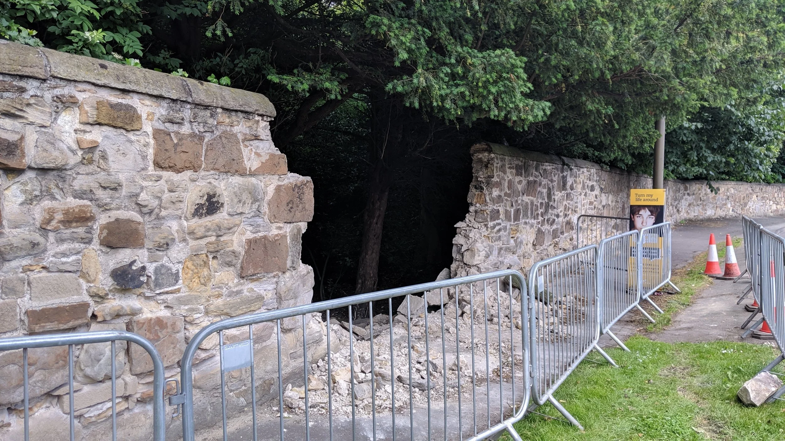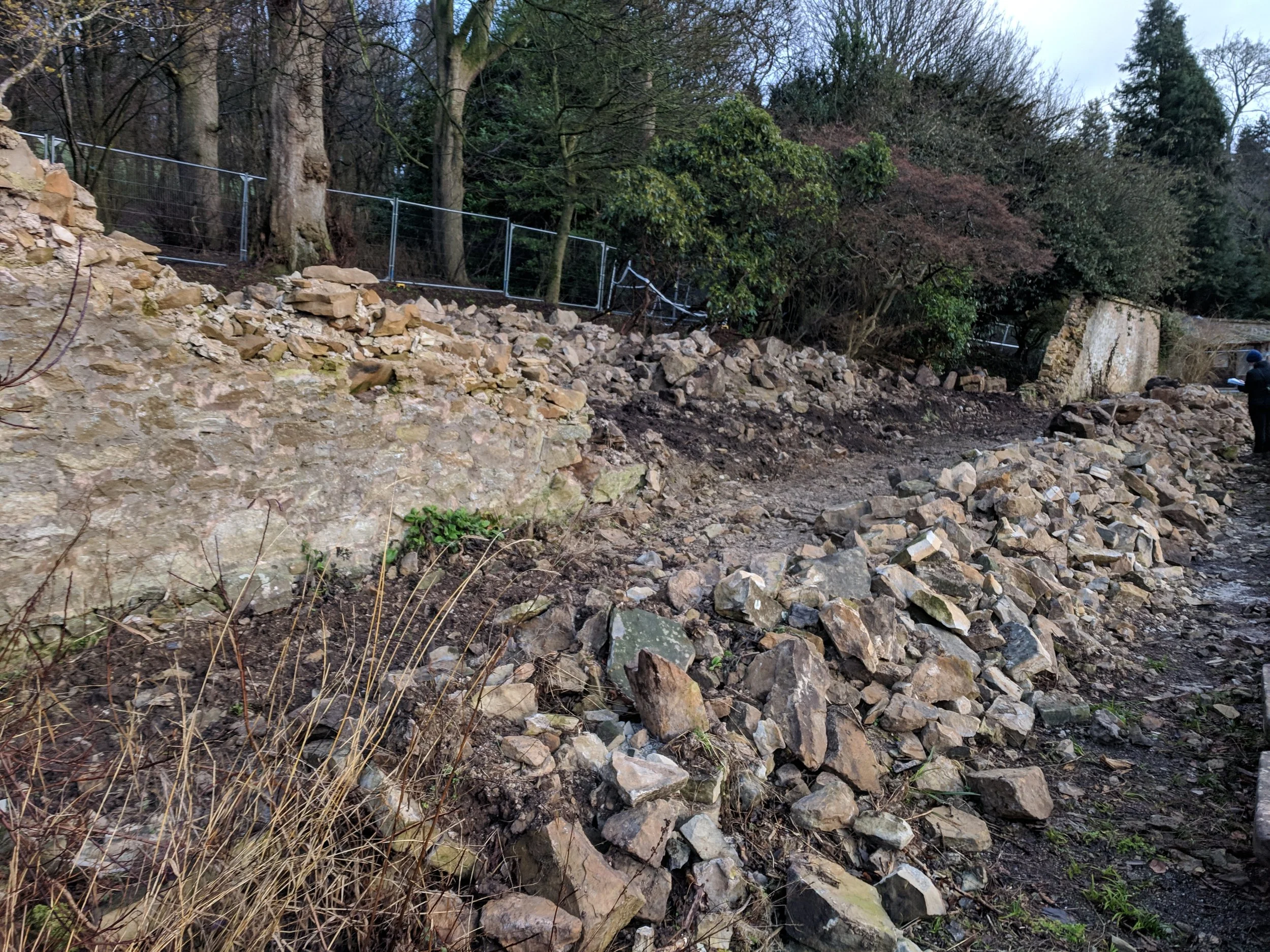 This wall at Hill of Tarvit Mansion House collapsed in January 2019 (photo shows the stone cleared to allow wall to be made safe)