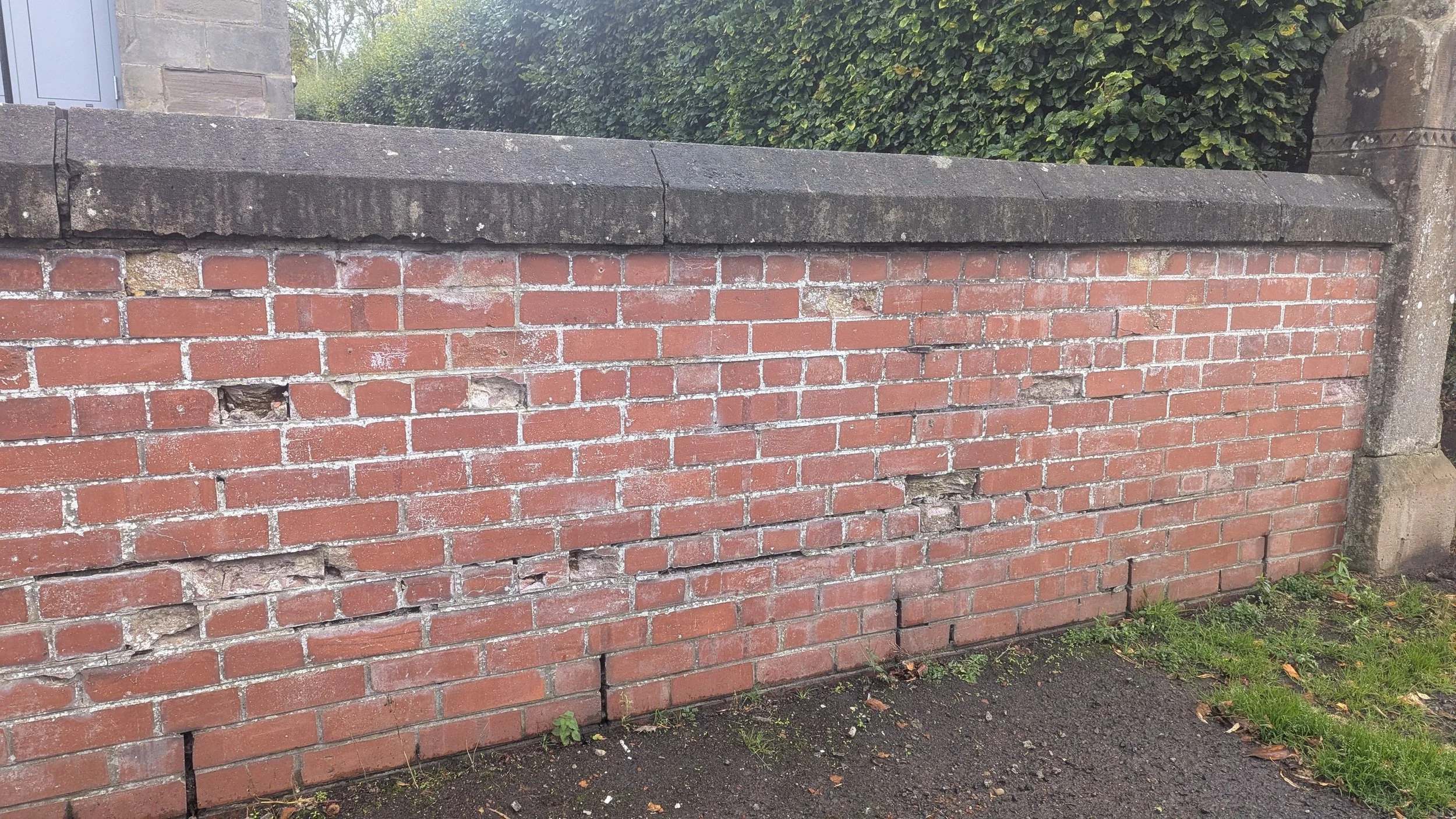 Boundary walls constructed from porous stone or brick are particularly vulnerable to salt migration. Groundwater or de-icing salts can be drawn into the stone o rbrick through capillary action. As the water evaporates, salts crystallise within the pores, leading to spalling, surface erosion, and eventual structural weakening.