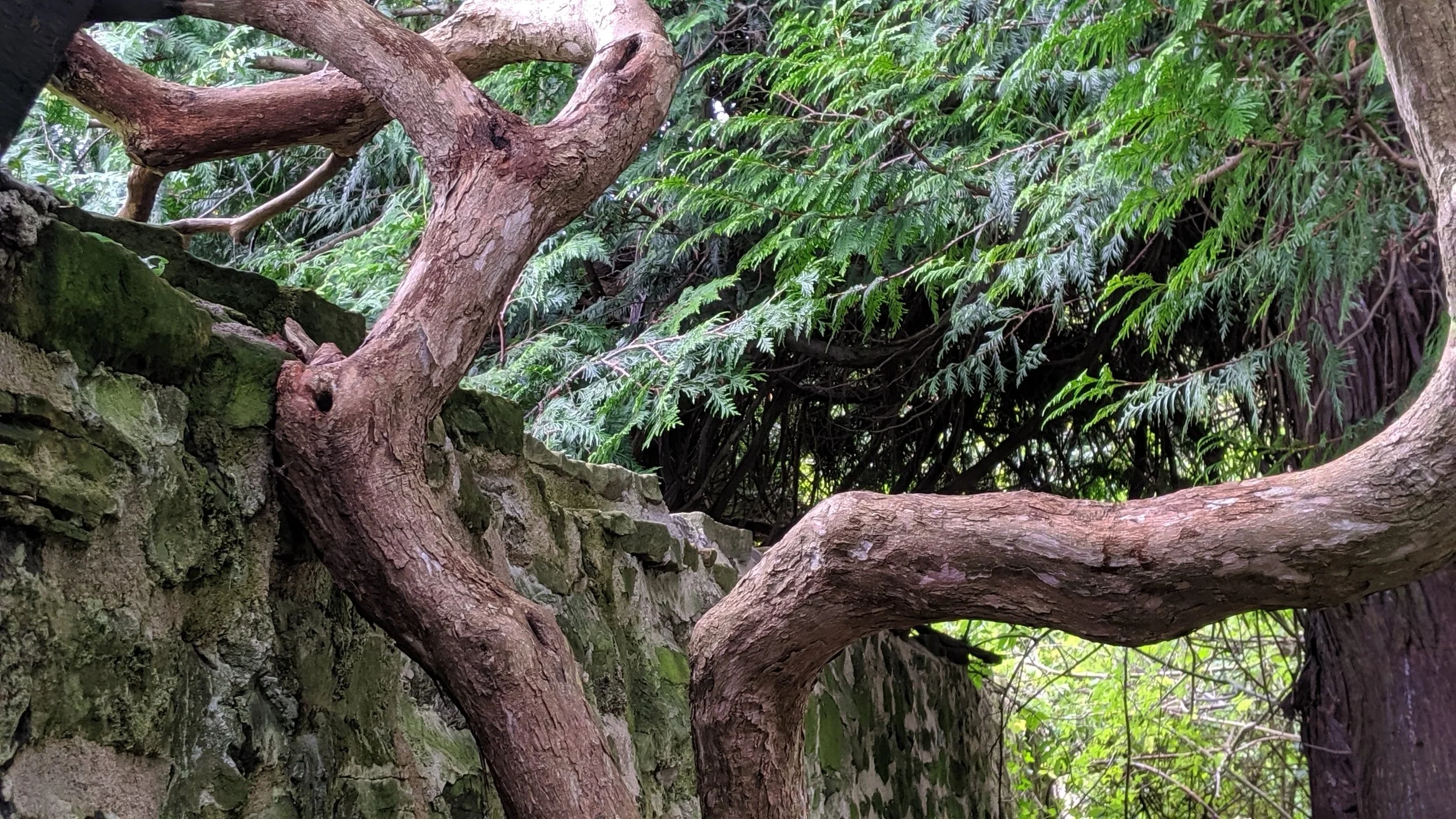 A heritage specimen tree adversely affecting the walled garden boundary wall head